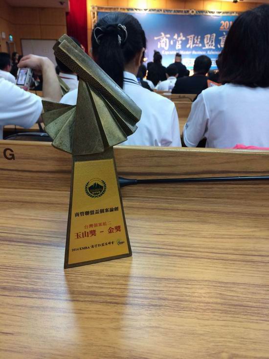 当宣布我们获得玉山奖-金奖时,我们跳起欢呼、纵情呐喊、小跑上台,我同样注意到那些为我们欢呼的不仅仅是我们的同学、队友和老师,还有其他的小组、朋友们,真是种超越了对手、超越了竞争的关系,钦佩之情油然而生。获奖当然高兴,有我们的努力、也有其他组提供的支援、还有老师给予的机会、更有伴随我们的运气,我并没有想到会夺得大奖,临来之前周院长也没有类似要求,支撑我一直努力准备的就是:我是一名北航MBA学生、我是翔龙飞虎队的队员,我必须为我的学校、为我的团队承担责任,我想这就是我们北航MBA风格、也是未来我们做企业家应该有的精神吧。合影结束后,台科大栾执行长和王伟学长握手时,我碰巧听到学长讲的一句话:“没有给学校丢脸!”让我倍感亲切,果然我们是相似的一群人啊,果然整个过程我们才能配合如此默契,三观正且相似,乃朋友也!