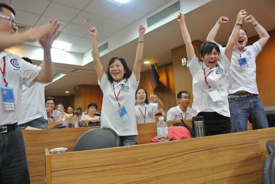 当点评嘉宾宣读完台湾个案组佳作奖获得者队名后,大家抑制不住内心的喜悦立刻沸腾起来,假若下面获得优胜奖的不是我们,那最后的玉山奖-金奖则非我们莫属。等待优胜奖宣读的过程煎熬却兴奋,当宣布翔龙飞虎队获得台湾个案组玉山奖-金奖的时候,我们终于放心的大喊欢呼起来,大方的接受友邻们的祝贺,骄傲的跑向领奖台,接受属于我们的奖项,那一刻是我到达台湾以来,最开心的一刻,没有之一。