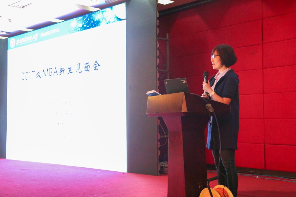 经济管理学院副院长秦中峰发表致辞。秦中峰副院长详细介绍了北航2017级MBA新生的基本情况以及培养要求。他表示,今年北航对2017级新生将加大奖励投入力度,覆盖全体新生人数近1/4,每个班级配备专职班主任,加强学生与学校之间的沟通联系,并承诺在未来的日子里,会关注每一位学生课程上的每一个困难,学业上的每一个困惑。