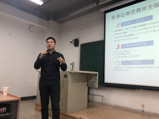 首先,冯申导师向大家介绍了香港资本市场简介和概况,香港证券交易所包含主板市场和GEM创业板市场,是全球一大主要交易所集团,是今年新增上市公司最多的市场,值得人们瞩目。然后,冯申导师向在座同学着重介绍了赴港IPO规则和赴港上市需要重点关注的问题,如:主板和创业板发行与上市条件、热门的生物科技行业认定以及监管机构对上市申请人独立性、关联交易、VIE架构等主要关注点。接着,冯申导师通过PPT向大家讲述了香港上市的流程步骤,其中包括赴港上市时间表、中介及成本费用等行业信息。最后,冯申导师向大家讲述了国内证监会IPO窗口指导,跟同学们分享了如何解决同业竞争问题、如何界定企业的关联方、关联交易具体包括哪些内容、窗口指导核查要点等知识点。