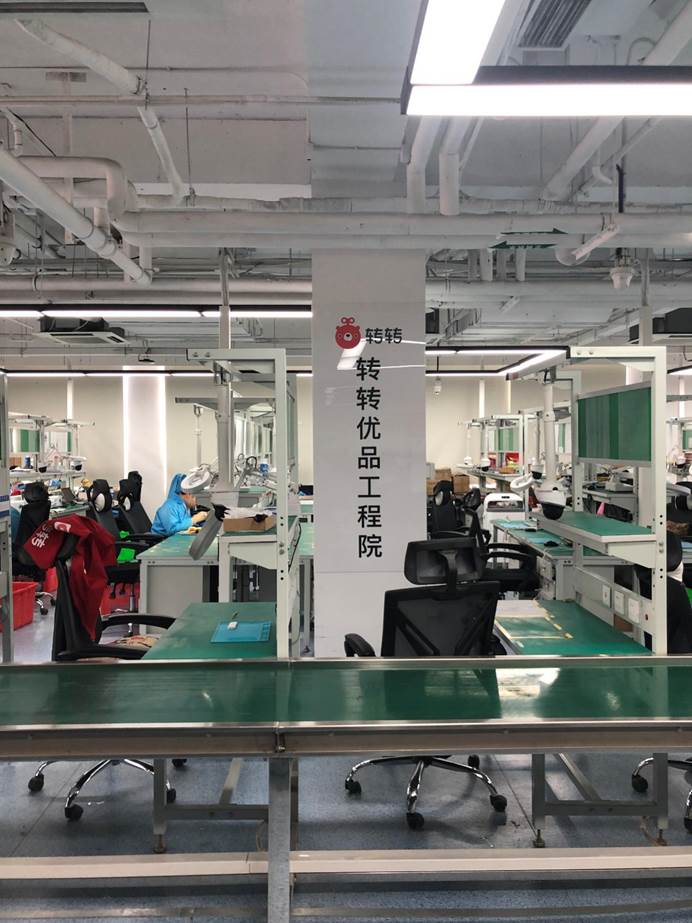 下面我们进入转转优品工程院,这是转转的核心部门智能验机中心,这里的工作区安静、整洁,条理。工作间里年轻的工作人员运作麻利地处理着每一笔工单,对一台台手机进行着检测、评估、记录,检测、包装一气呵成,工作人员动作娴熟,操作专业。