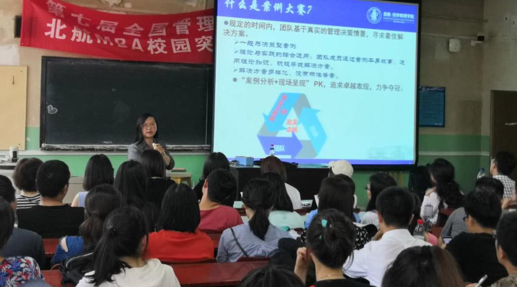 5月25日中午,北航MBA教育中心在主南405教室举行了“第七届全国管理案例精英赛(2019)北航MBA校园突围赛暨新生案例大赛动员会”。大会由北航MBA教育中心常务副主任胡鹤老师主持,会议邀请了北航经管学院会计系主任、第五届和第六届全国管理案例精英赛北航队主教练邹艳教授为本次大赛做动员。