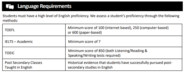 (2)语言成绩要求: