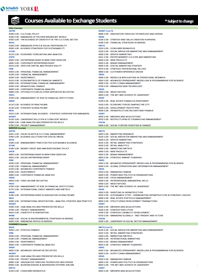 三、加拿大约克大学舒立克商学院MBA交换生项目
