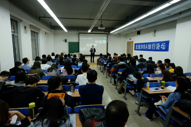 2017年4月8日,和风送暖,百花绽放,北航MBA知行论坛携手IBM公司副总裁、金融行业总经理郭仁声先生为同学们安排了一场题为《风雨百年行,转型新 为要》的精彩讲座。