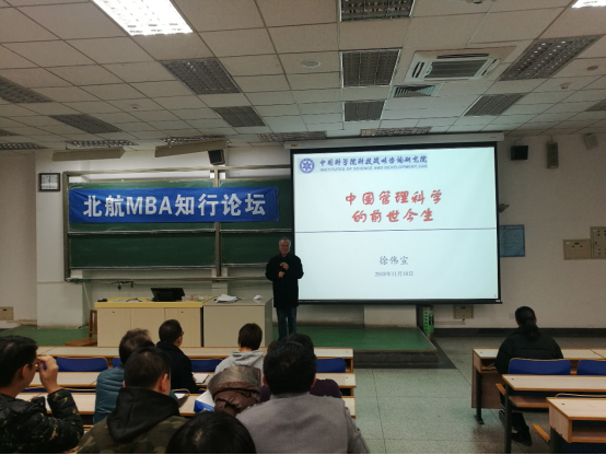 11月18日晚,初冬的北京,寒风瑟瑟,但北航老主楼的大阶梯教室里,人头攒动,来自经管学院的同学们热情高涨,没一丝寒意。同学们在此聆听华罗庚教授的高足,原中国科学院科技政策与管理科学研究所所长、中国优选法统筹法与经济数学研究会理事长,国家自然科学基金会管理科学部资深评委徐伟宣老师的《管理科学的前世今生》讲座。