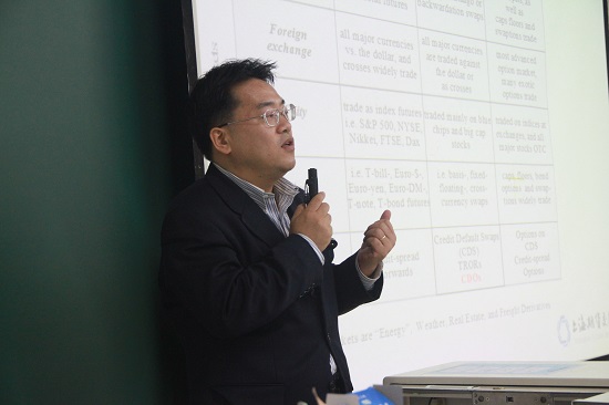 为庆贺北航经管学院建院60周年,MBA中心特意组织了一系列高质量的知行论坛讲座活动。11月5日晚,MBA中心同时举办了两场精彩的活动,讲座现场均是学子云集,座无虚席。金融行业系列讲座“衍生品市场机遇和挑战”由张惠岩先生在新主楼A212开讲。经管学院韩立岩教授、李平教授等出席活动,并对其在行业领域内的研究成果作出高度评价。