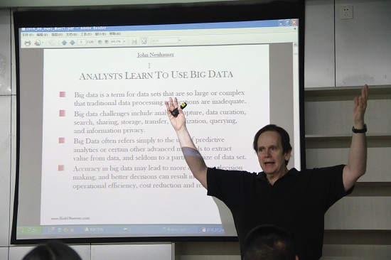 “John 在对冲基金领域有着十几年的经验,他所提出的逆向交易理论也颇受业界推崇;他是Chalfont Hill Capital的创始人,同时也是美国《风险观察员》(the Risk Observer)的总编辑。”当主持人韩立岩教授介绍话音一落,A618教室立刻响起热烈的掌声。