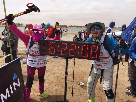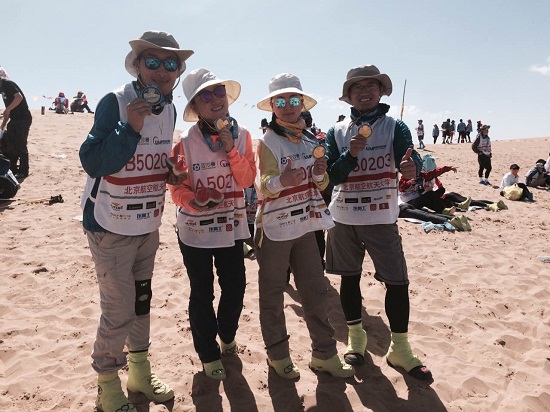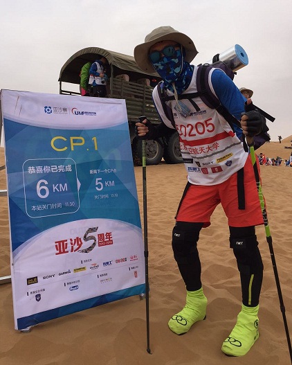亚沙第三日,下了一夜雨的沙子也变硬了许多。迎着初升的太阳,踏着变硬的泥泞的沙地,我知道十一公里的路程相比前两日已经轻松很多,心中默数着1212打起节奏脚步也不那么蹒跚了,用脚丈量着每一寸的沙地似乎都变成了祭奠和回忆,我竟然对这寸草不生之地有了感情。翻过最后一个沙丘,当我拖着一条残腿遥望到终点沸腾的人群和欢呼时,我的泪再也止不住的流下来,终于明白一个成功跑过全程马拉松的朋友曾经告诉过我,为什么结束下来会有这种笑着哭着迎向终点的状态,实在是感同身受。走完全程无关乎理想、信念亦或是懦弱、逃避,只是“付出青春不留遗憾,为了心中的美好,直到天荒地老”。