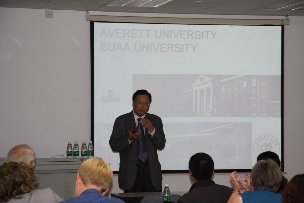此次的MBA交流活动在我院新主楼1148教室举行,首先由MBA中心马老师致欢迎辞并介绍活动日程。其次,我院副院长陈向东教授介绍了经济管理学院的历史及发展以及我院MBA的现状,尤其介绍了我院MBA这几年在学术、规模及国际交流上的突飞猛进式的跨越。接下来,Dr. Wally Saunders介绍了Averett University MBA的办学理念及办学特色。在两位教授的发言过后,两校的MBA学生就彼此关心的问题进行了提问。而两位教授的细致解答和 幽默风格让同学们在互动的同时对彼此学校充满了向往。