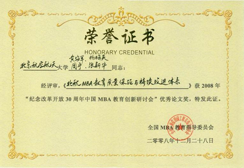 庆祝改革开放30周年MBA教育创新研讨会为期一天,分七个主题11个单元,共报告了一百多篇论文,反映了我国开展MBA教育18年来方方面面的成果。会上,杨梅英副院长就题为“北航MBA培养质量保证体系的探索与实践”论文向大会作了报告,得到了参会院校MBA负责人的广泛认可和赞同。研讨结束后,组委会从参会的160多篇论文中评选出24篇优秀论文,由黄海军、杨梅英、周宁、苏文平、张新华等共同完成的《北航MBA培养质量保证体系的探索与实践》一文成功入选。