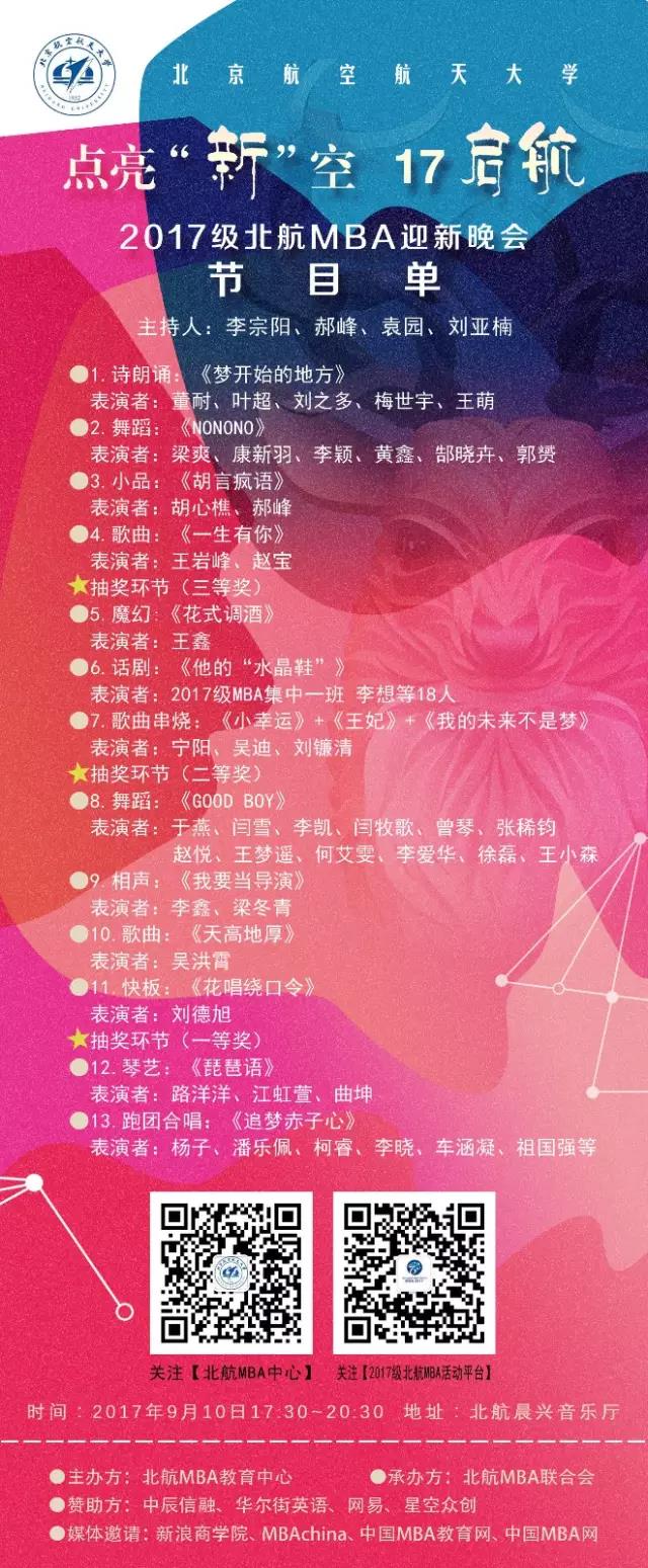 2.迎新活动为北航MBA培养方案的必修环节,要求每位新生都必须参加,无特殊原因不得请假。请同学们提前妥善安排好工作、学习及生活事宜。