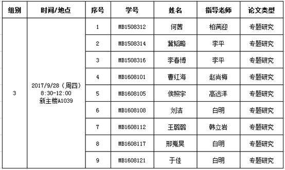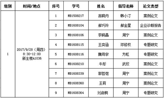 北航经济管理学院专业硕士教务中心定于2017年9月28日(周四)上午8:30-12:00组织MBA论文开题答辩,注意事项及分组安排如下: