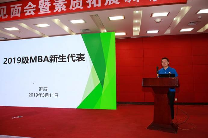 秦中峰副院长近年来在学院的发展,尤其是MBA项目的建设上做出了一系列开创性举措。当天亲临现场与同学们共同见证这一喜悦的时刻。秦副院长致辞中详细分析了2019级MBA新生相关数据,包括生源特点、地域分布、行业背景、学科专业等,丰富详实的数据赢得同学们阵阵掌声。